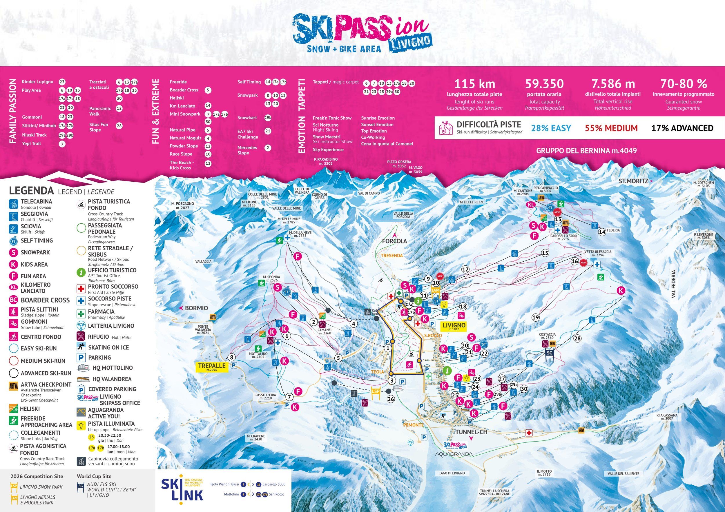 | Pistes in totaal: | 115 km |
